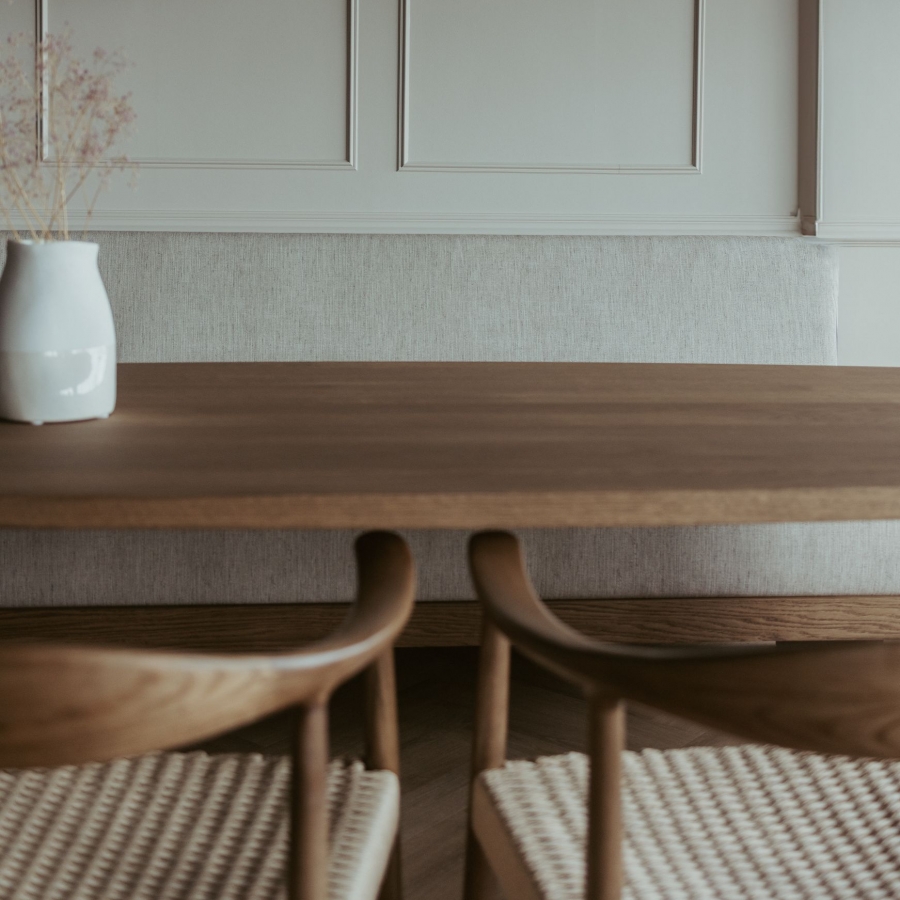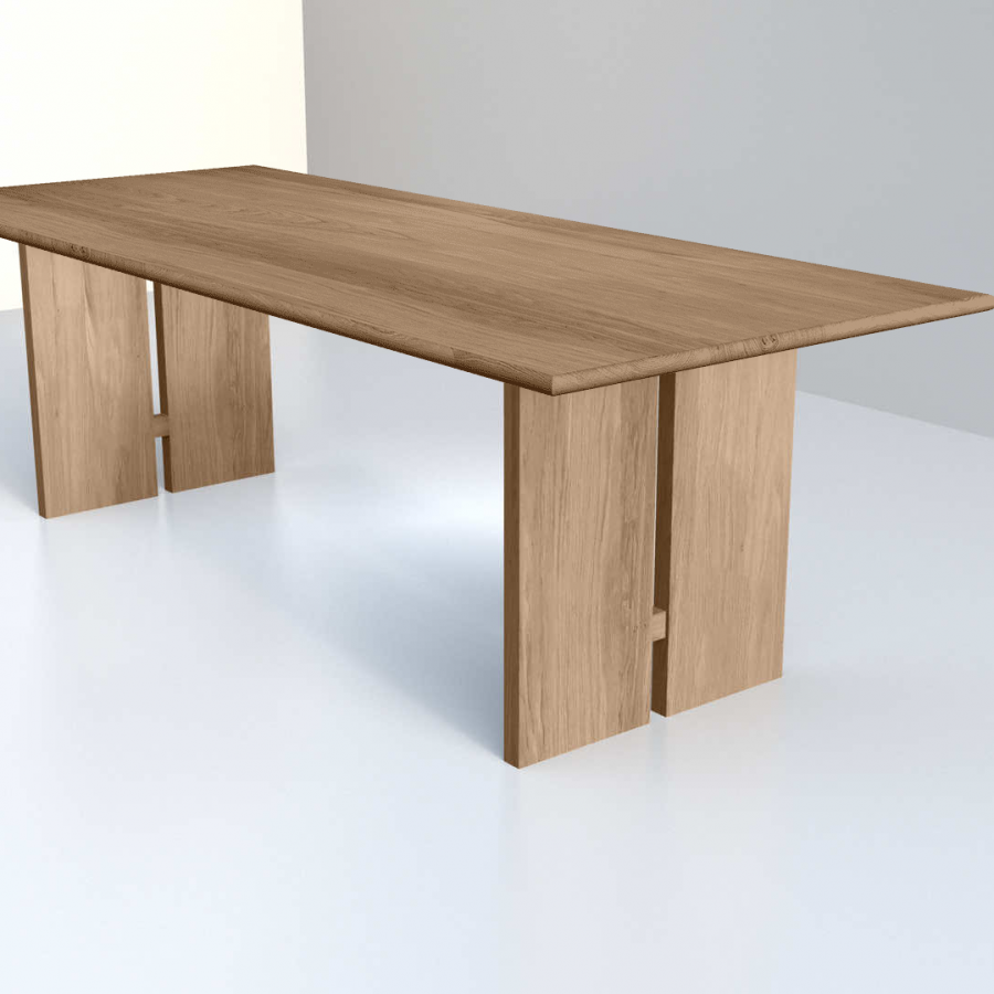 Deze tafel heeft een recht blad met een trendy ronde rand afwerking die het blad zacht en volgense de laatste interieurtrends maakt. De tafel is gemaakt van massief eikenhout zonder knoesten, en is van de beste A- kwaliteit eiken die er is, zoals je van ons mag verwachten.
