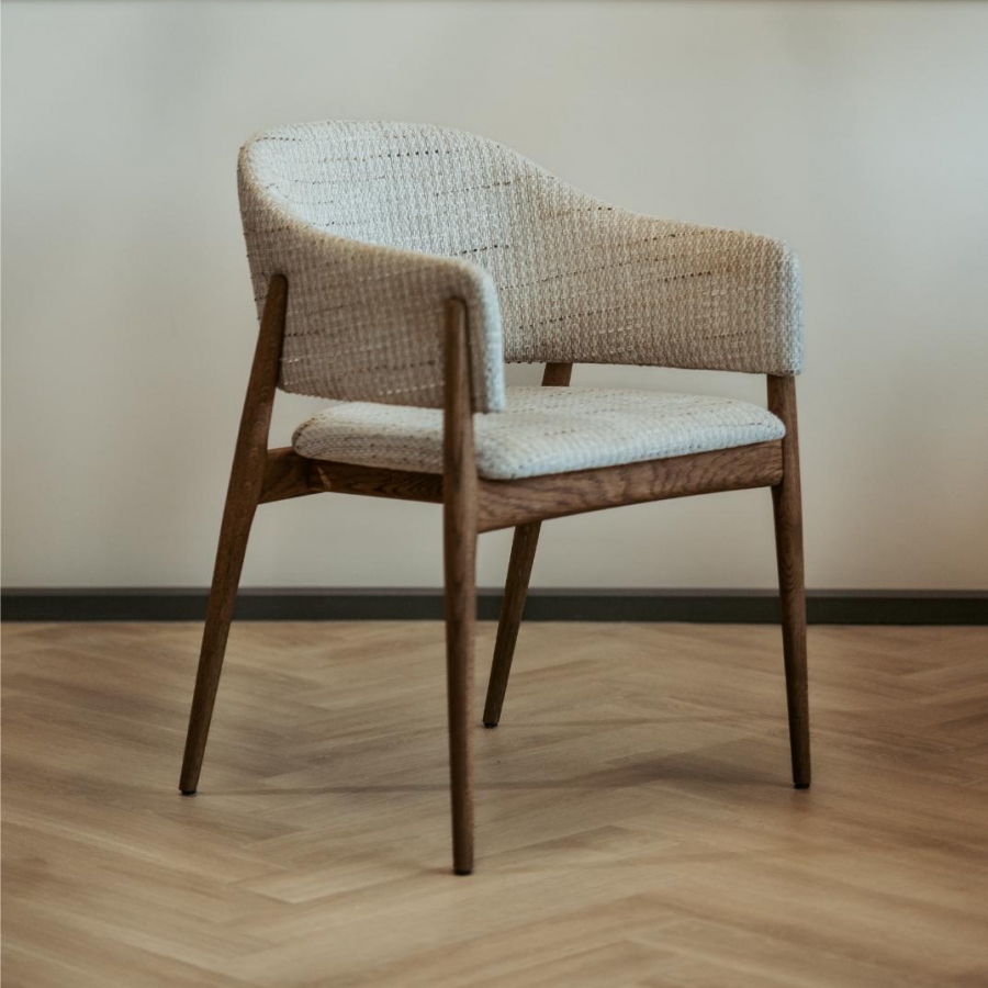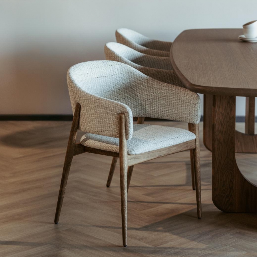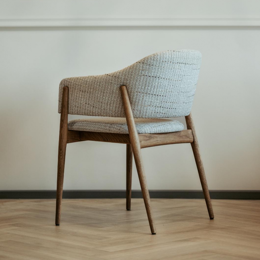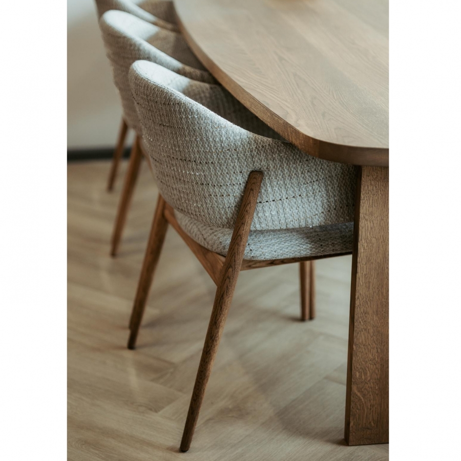 Eetkamerstoel Lofty is een gestoffeerde stoel met massief eiken poten. De stoel kenmerkt zich door een modern en stabiel design en biedt veel comfort.