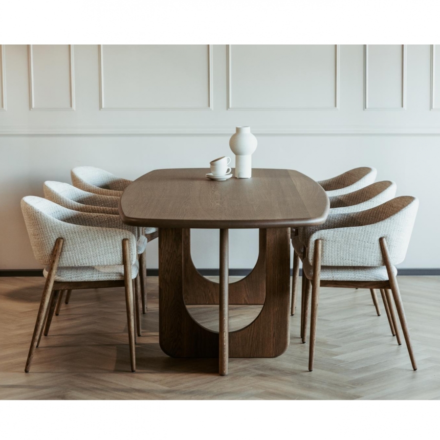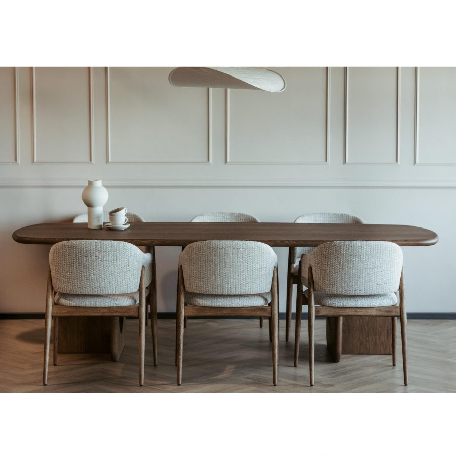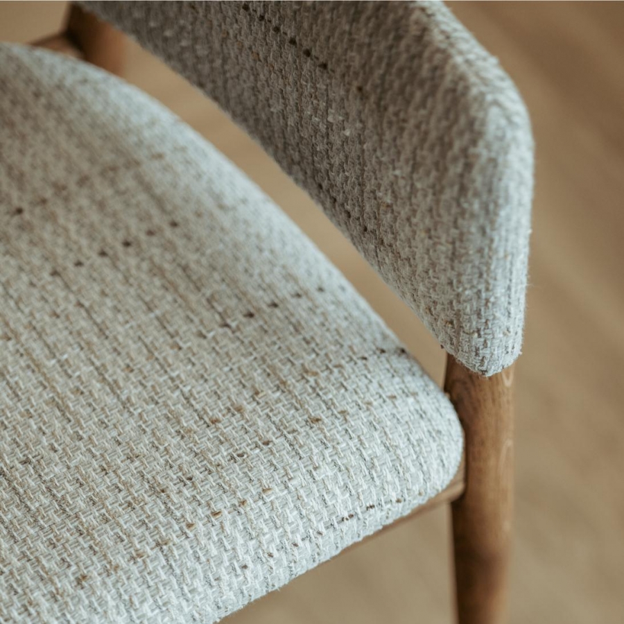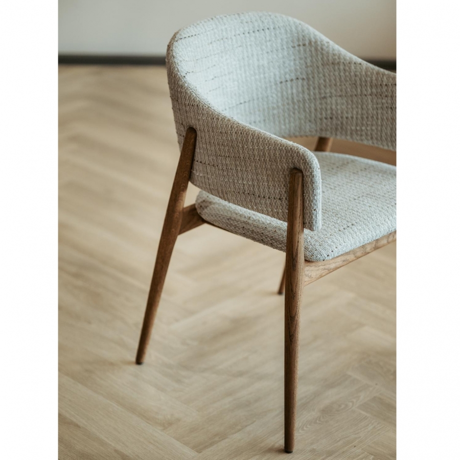 Eetkamerstoel Lofty is een gestoffeerde stoel met massief eiken poten. De stoel kenmerkt zich door een modern en stabiel design en biedt veel comfort.