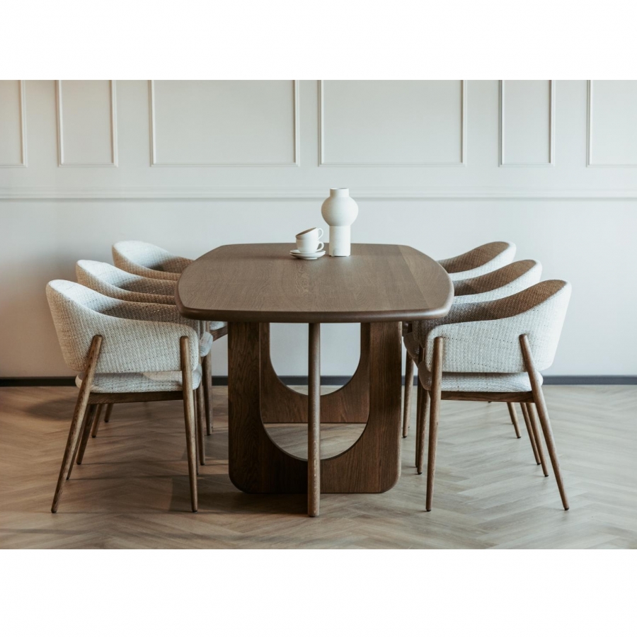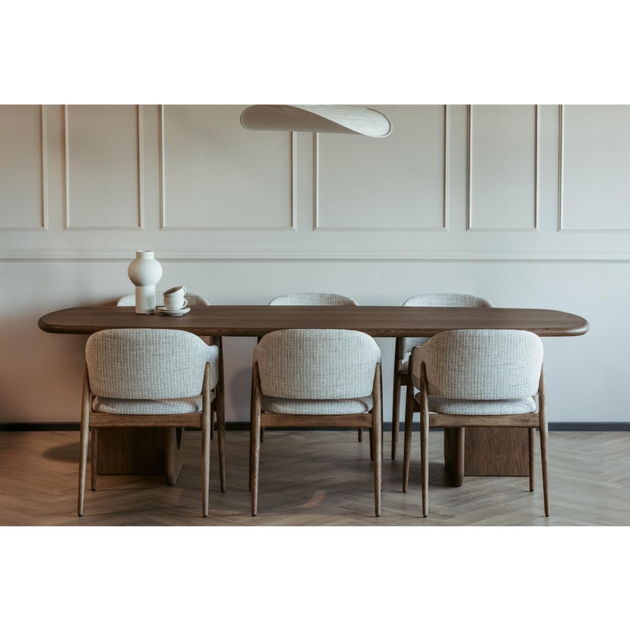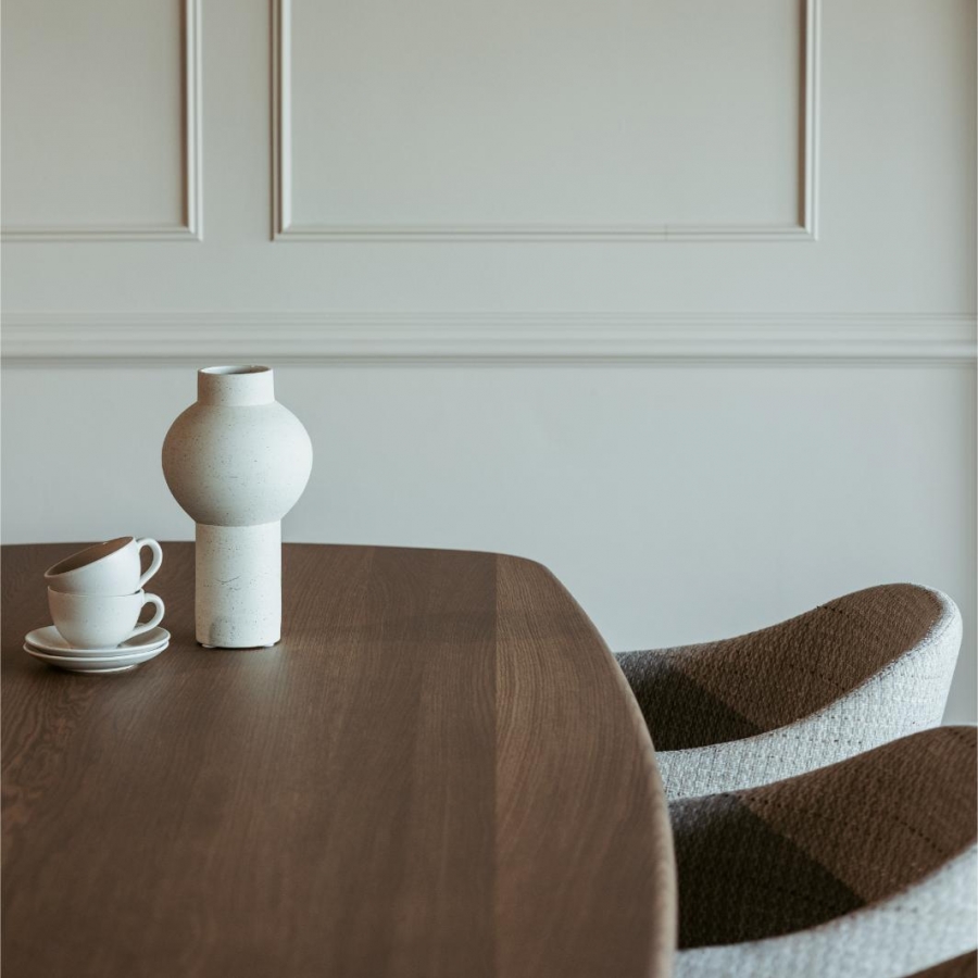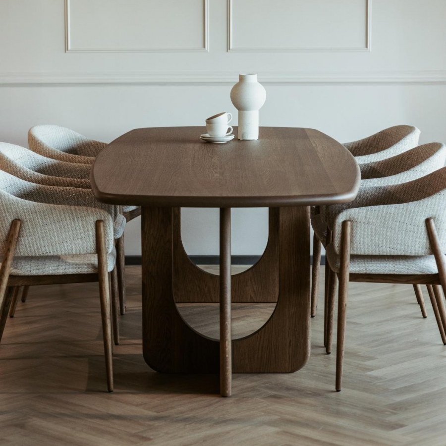 De massieve poten zijn de eye-catcher van deze tafel. Ze staan verdeeld onder het tafelblad. De poten zijn aan de zijkanten ook volledig rond afgewerkt zodat dit mooi matcht met de randafwerking van het tafelblad. Doordat de poten wat verder onder het tafelblad zijn geplaatst, kun je ook gebruikmaken van de kopse kanten.