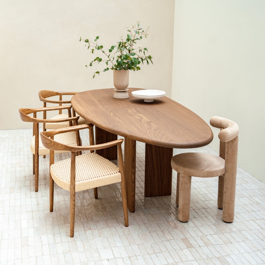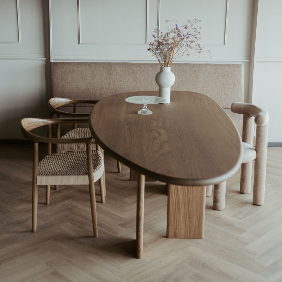 Deze tafel heeft een organisch blad met een trendy ronde rand afwerking die het blad zacht en volgense de laatste interieurtrends maakt. De tafel is gemaakt van massief eikenhout zonder knoesten, en is van de beste A- kwaliteit eiken die er is, zoals je van ons mag verwachten.